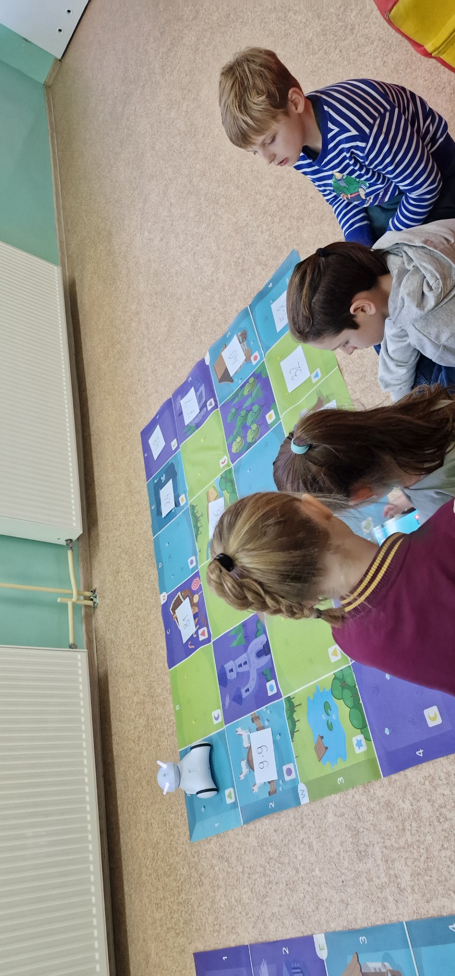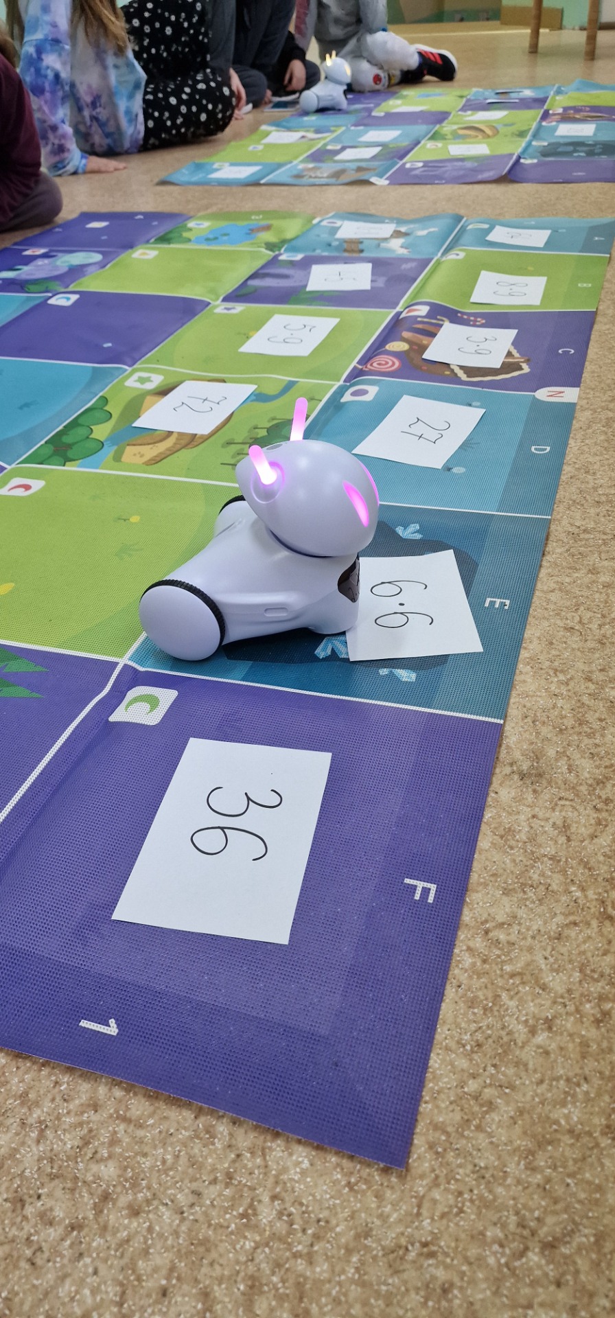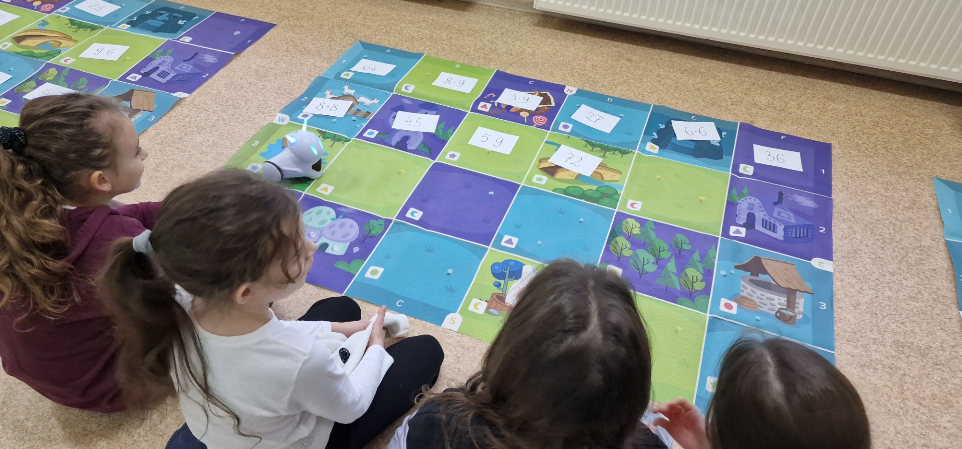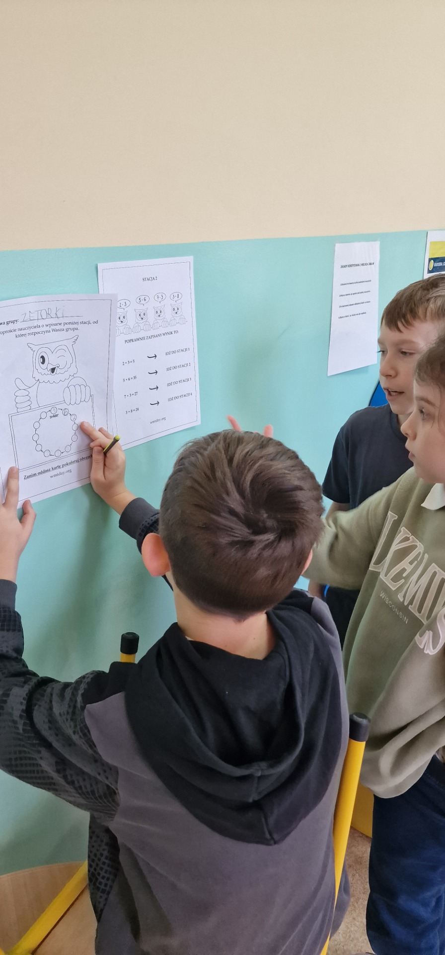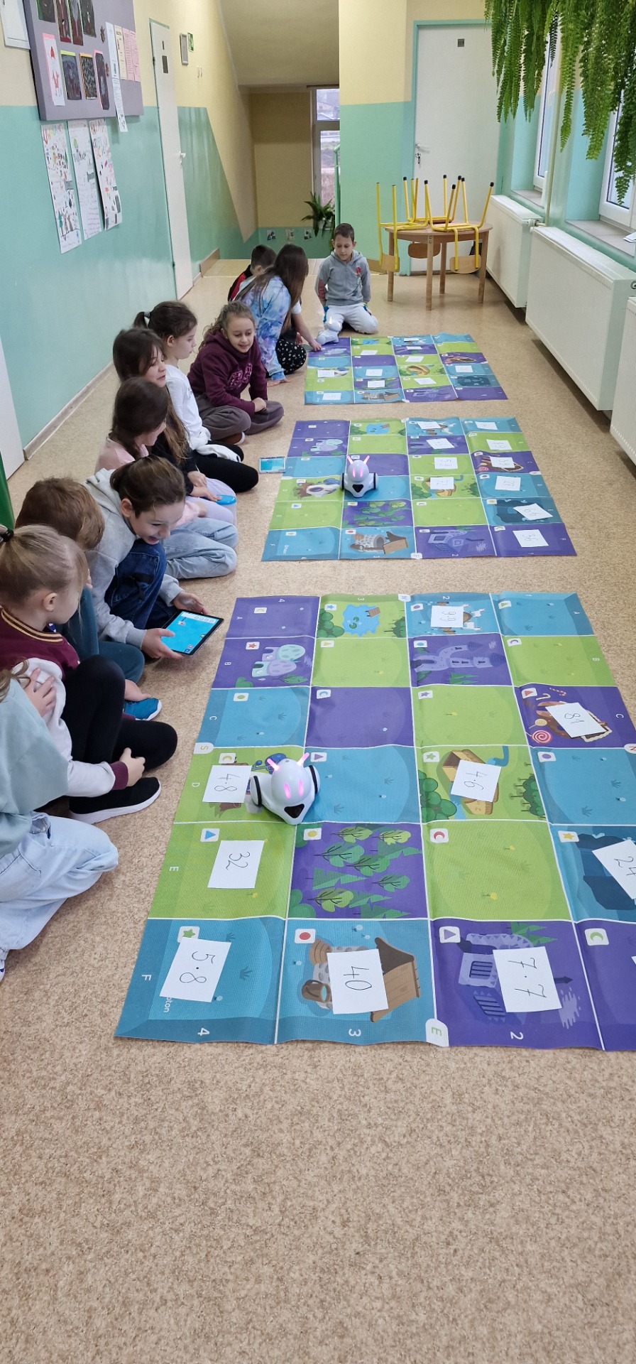 W obchodach Światowego Dnia Tabliczki Mnożenia wzięli rownież udział uczniowie klasy III. Trzecioklasiści podzieleni na 4 drużyny rozwiązywali zadania pokonując w odpowiedniej kolejności 12 zadaniowych stacji matematycznych. Następnie, także w grupach, rozwiązywali zagadki, rebusy, łamigłówki. Do utrwalenia tabliczki mnożenia wykorzystaliśmy też roboty Photon, które dzieci musiały odpowiednio zaprogramować, aby rozwiązać zadania. To była wspaniała zabawa i dzień pełen pozytywnych emocji.